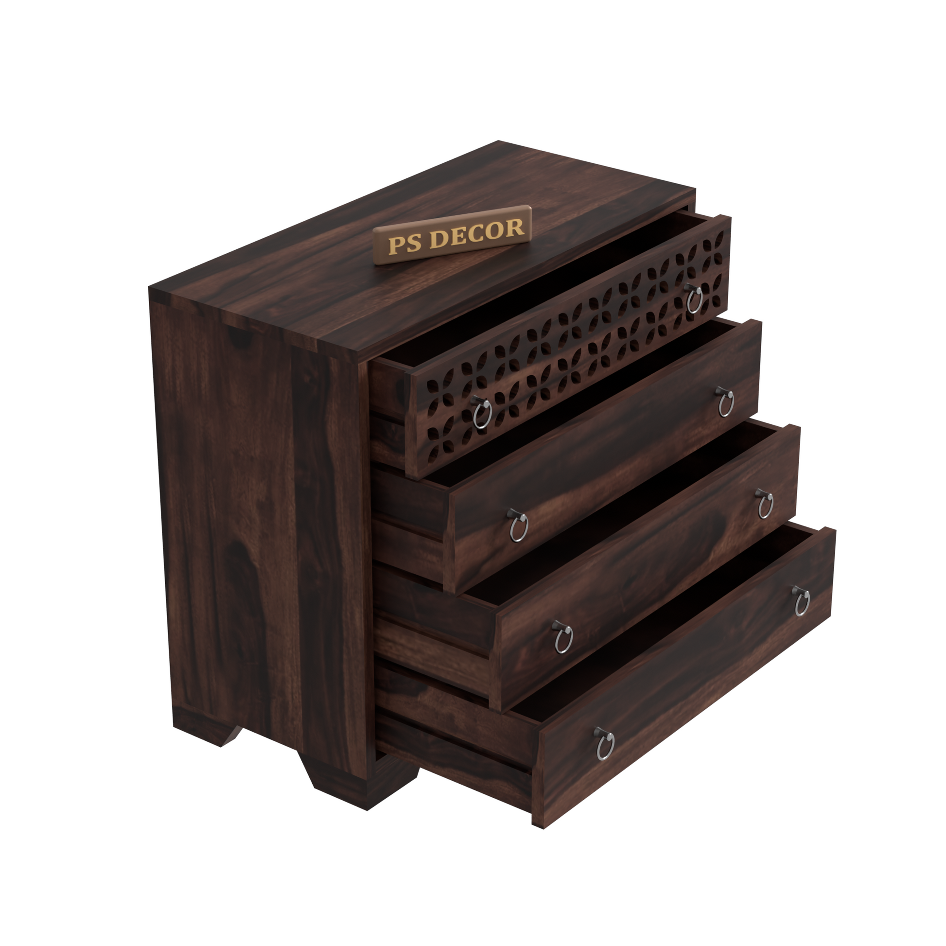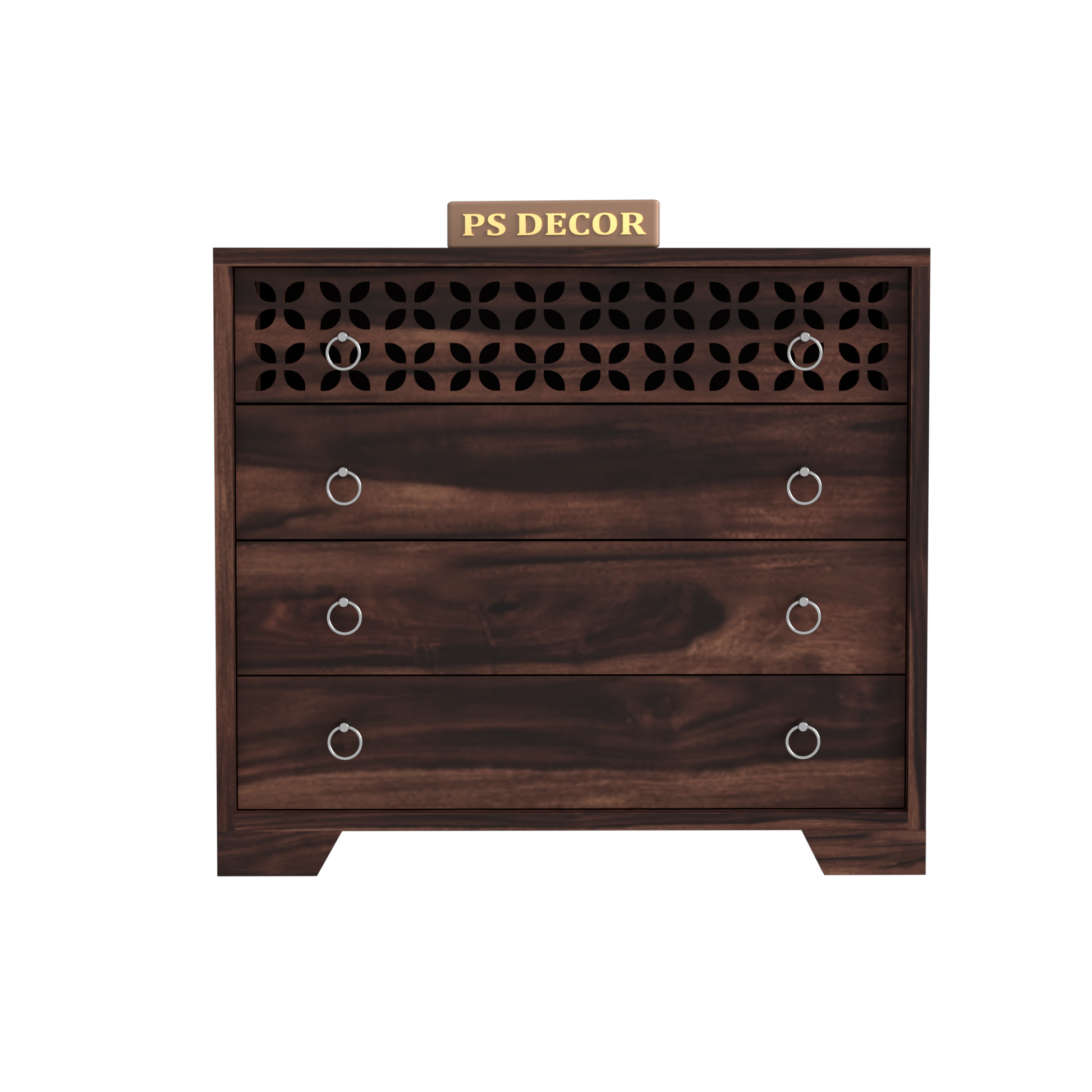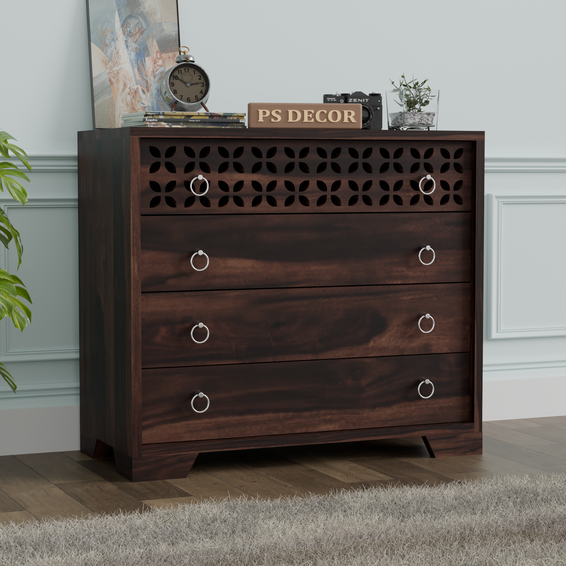 Modern Wooden Chest of Drawers with Carved Front Panel | 4 Drawer Storage