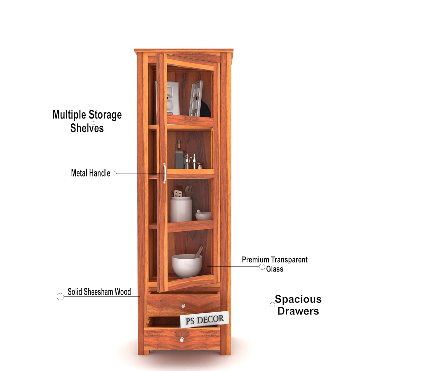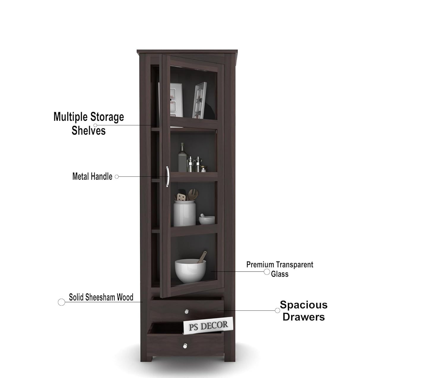 Storage Type: Glass Door Shelves + 2 Bottom Drawers