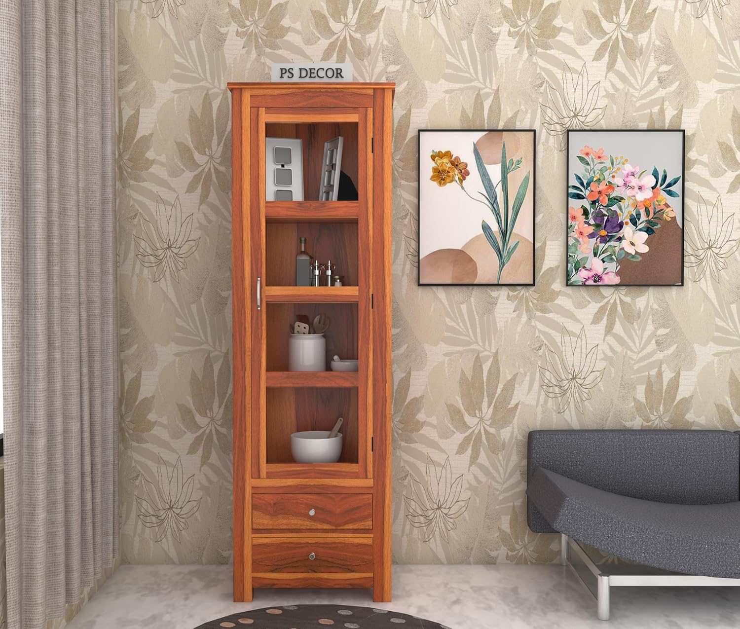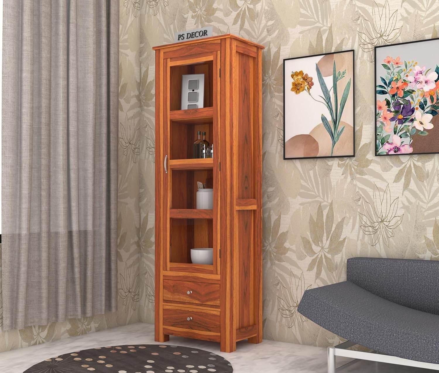 Décor items, bottles, crockery, and accessories shown in images are for representation purposes only and are not included with the product.