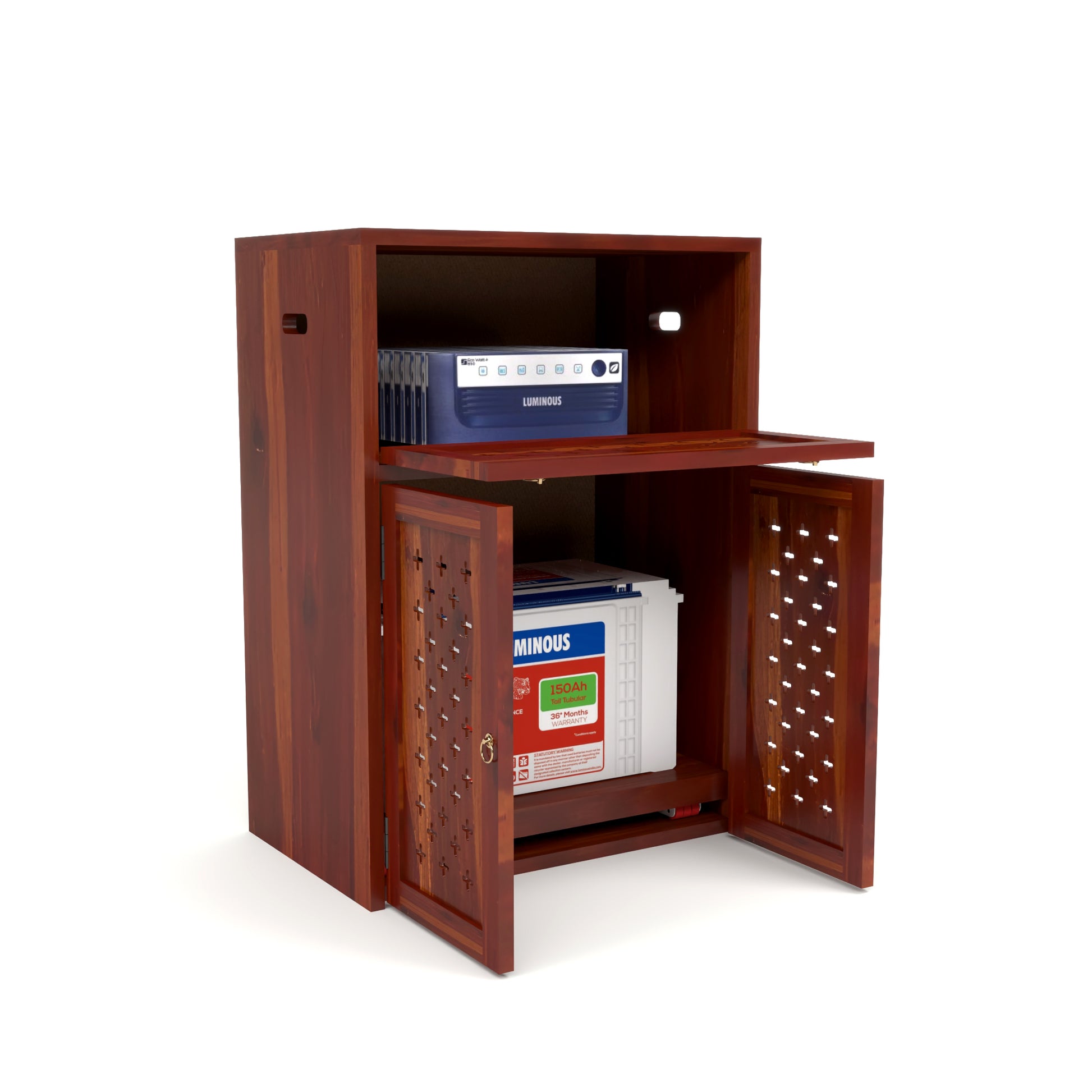 This Wooden Inverter Cabinet is designed to safely house your inverter and battery while keeping your space neat and organized. The cabinet features a ventilated front panel with cut-out patterns that allow proper airflow, helping maintain temperature and ensuring safe inverter operation.